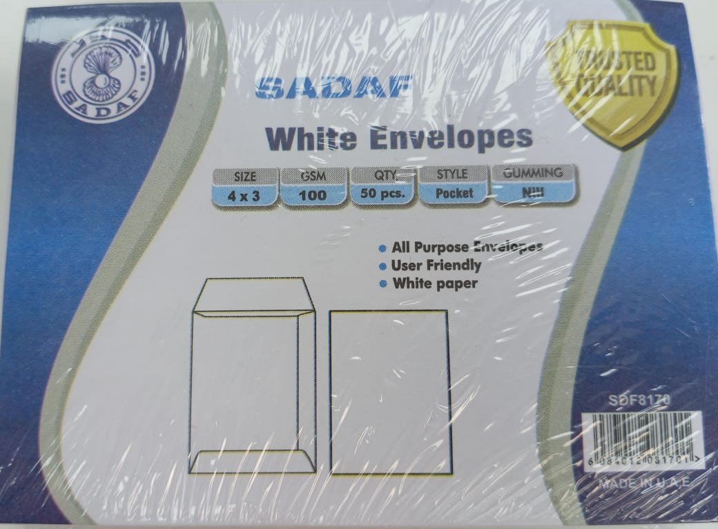 SADAF WHITE ENVELOPES 4*3 50 PCS IN A PACKET